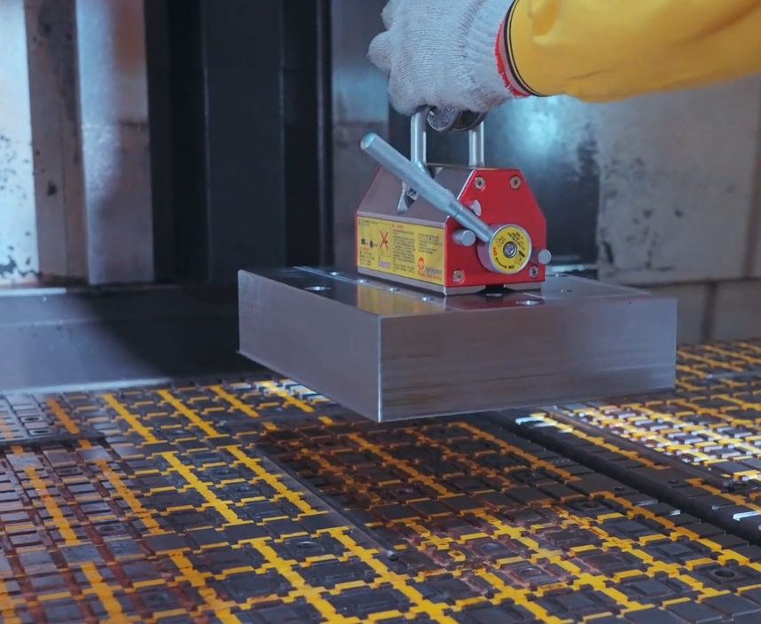Custom-designed magnetic fixtures are mounted on the robotic arms, combined with a multi-zone collaborative magnetic clamping system, enabling seamless and flexible automation. This setup achieves 48-hour unmanned, lights-out production, realizing measurable benefits in smart automation and the digital transformation of magneto-integrated manufacturing.