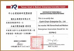 - Award the 19th Taiwan SMEs Innovation of Ministry of Economic Affairs for EEPM-C Series.