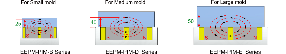 - Magnetic force depends on the mold needs, with 3 sizes pole can choose.