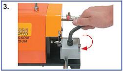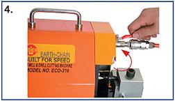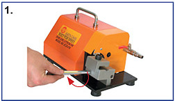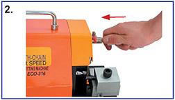 Select the proper wheel and diameter of end mill drill Ø3mm~Ø16mm, put the end mill (drill) horizontally into the groove from right to left. Adjust the proper length for cut and tighten the base with Ø10mm Allen Key.