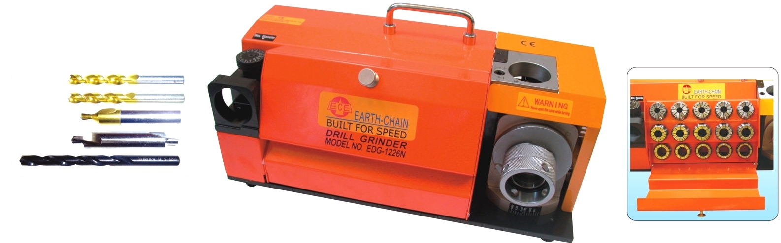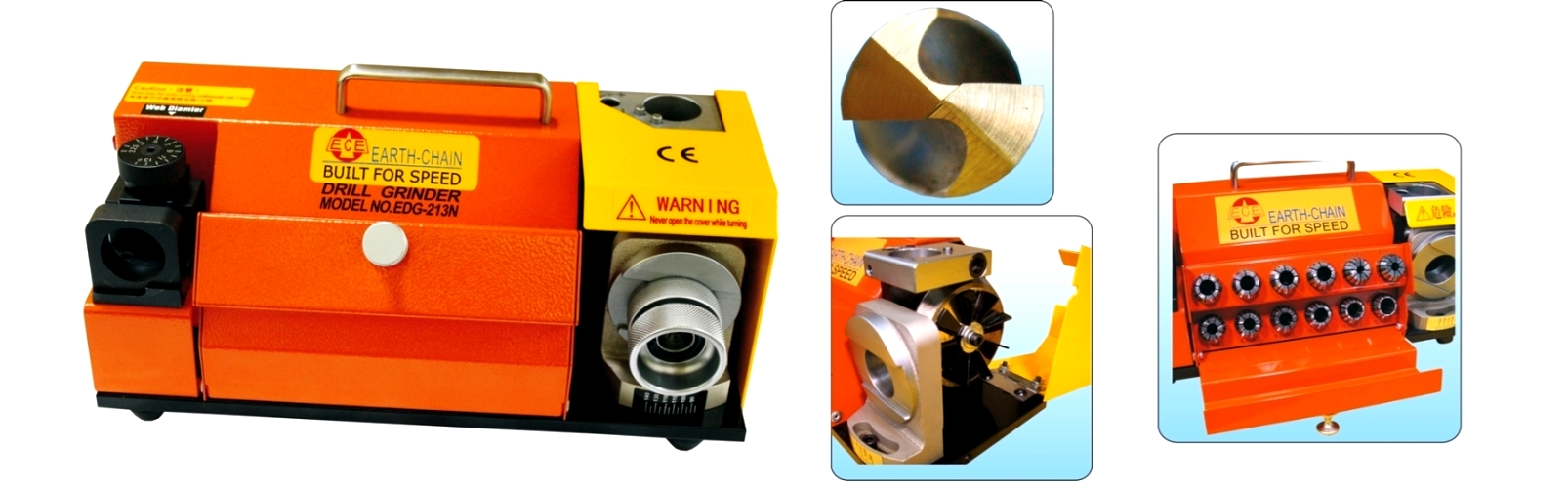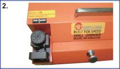 - Insert the collet holder with drill and push to the grinding wheel slowly, then move left and right repeatedly to grind the center point of drill until the grinding sound disappeared.