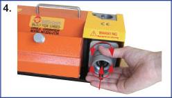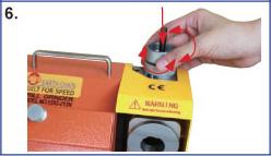 Adjust the center point grinding base to the suitable position. Turn right for bigger, turn left for smaller. ***as shown on diagram #5