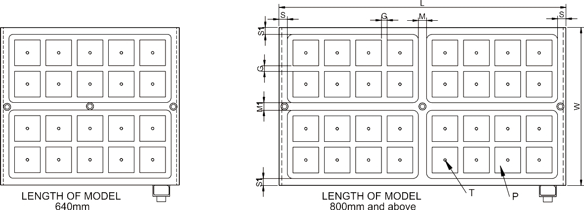 - Minimum size of workpiece required as 4 alternate magnetic square poles and above contacts is necessary for optimum clamping.