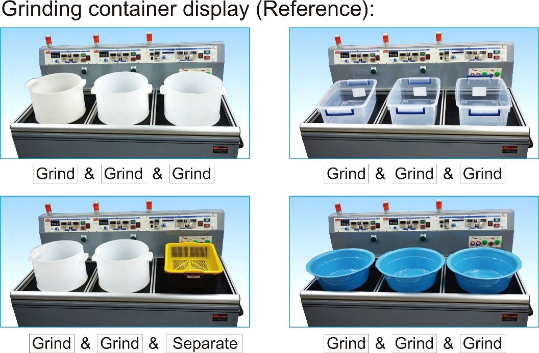 * Grinding capacity about 3 kg workpieces. 3 barrel is approximately 9 KG.