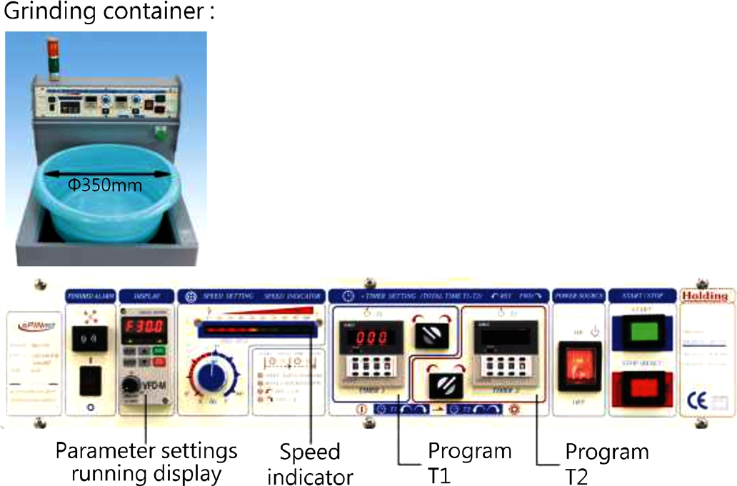 * 2-stage grinding programs with independent adjustment functions for grinding time and rotation direction.