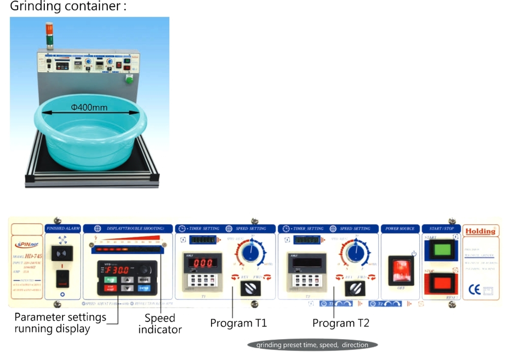 * 2-stage grinding programs with independent adjustment functions for grinding force (speed), grinding time and rotation direction.