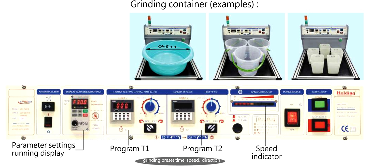 • Can place one large grinding tank with Ø500 x 200 mm size. (The tank is a standard accessory)