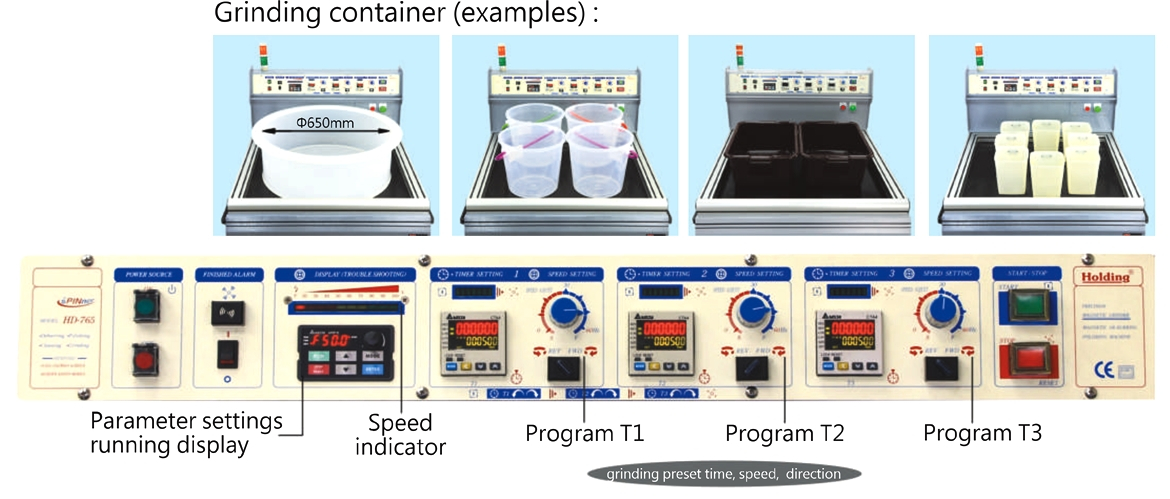* 3-stage grinding programs with independent adjustment functions for grinding force (speed), grinding time and rotation direction.