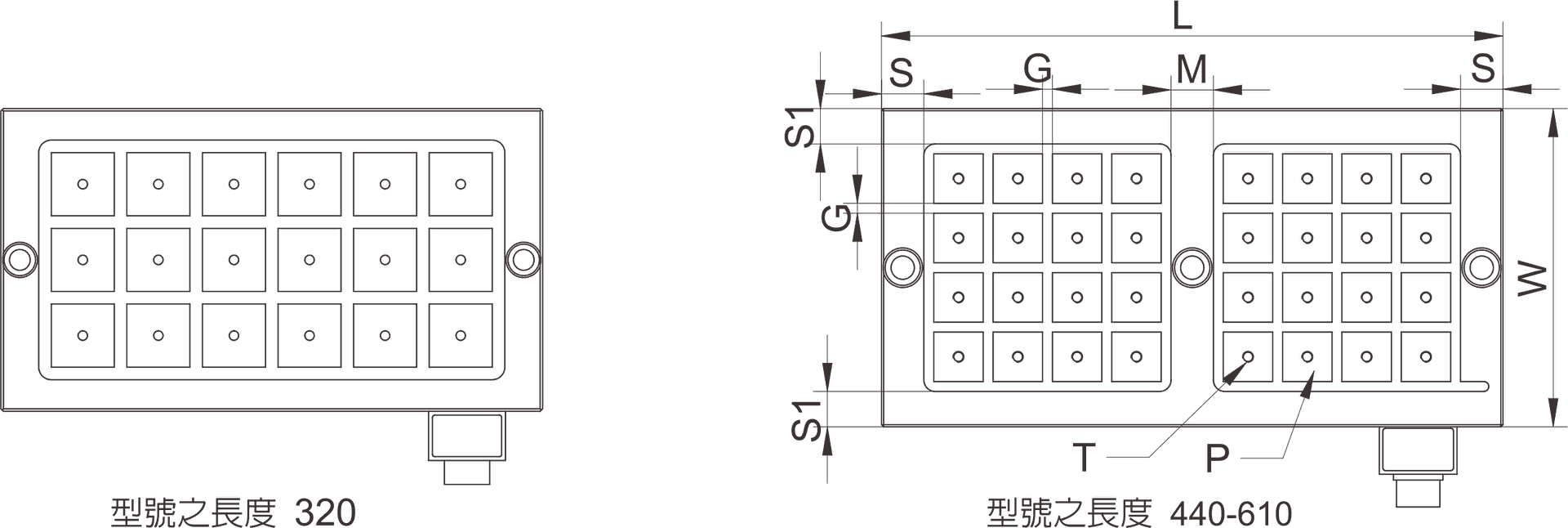 磁極尺寸 35X35 mm,磁幅高度 15 mm,磁力 580±5% kgf/4 個磁極