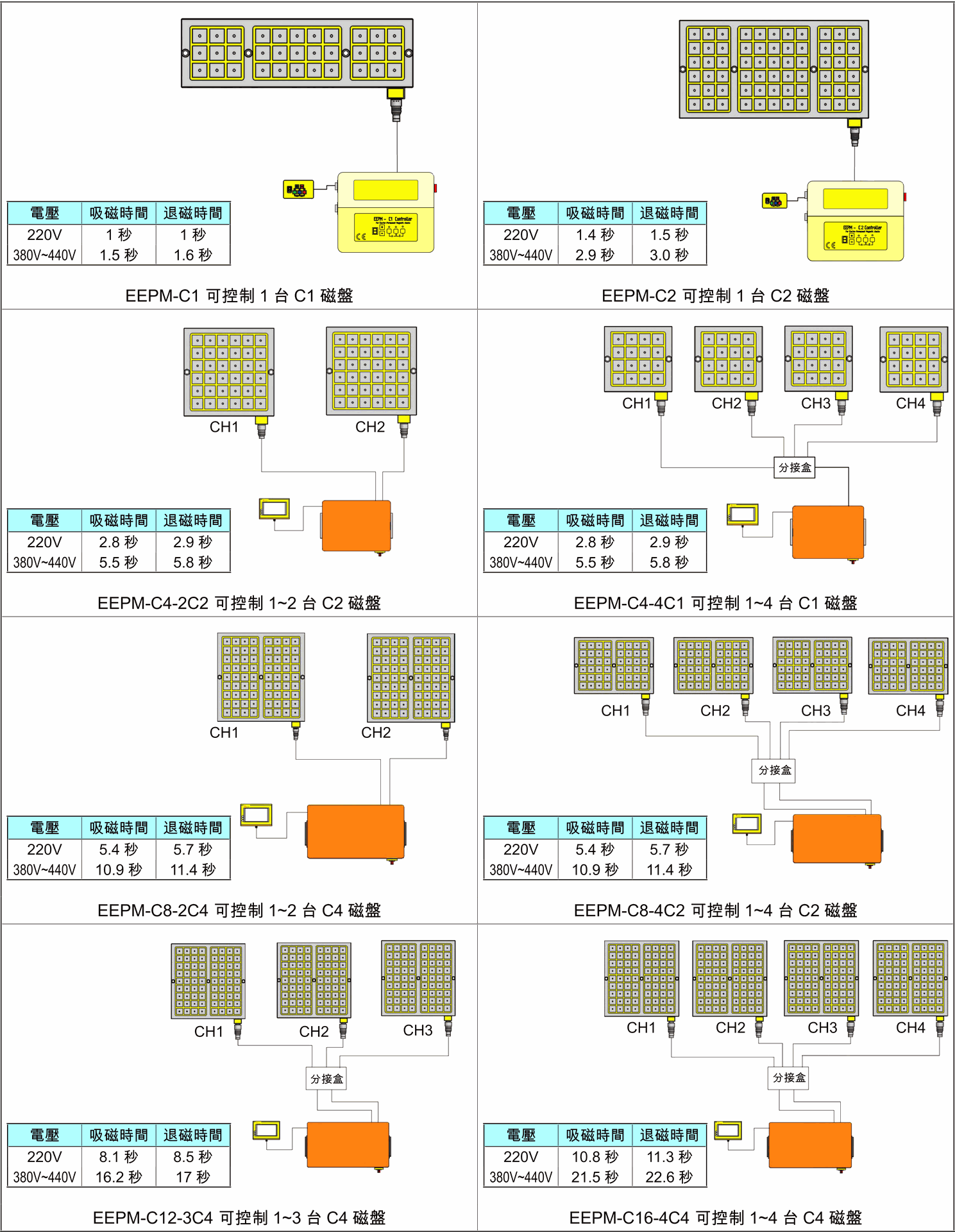 因應客戶不同加工需求,本產品將磁力設計為八段可調式功能,其段數磁力數據如下: